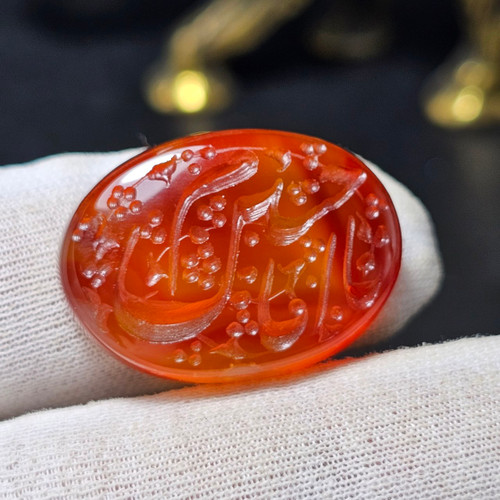 نگین سنگ عقیق سرخ معدنی خراسانی با خط دست کد l 31743