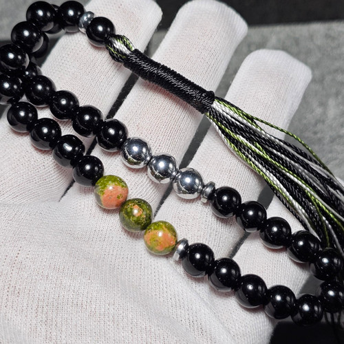 تسبیح ۳۳ دانه سنگ طبیعی اوناکیت معدنی کد 37103