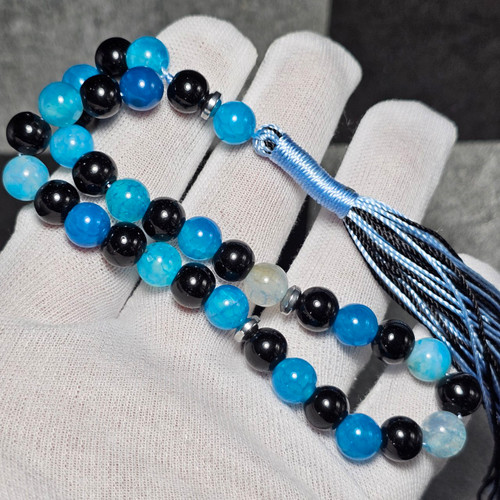 تسبیح ۳۳ دانه سنگ عقیق دراگون معدنی و اونیکس کد 37082