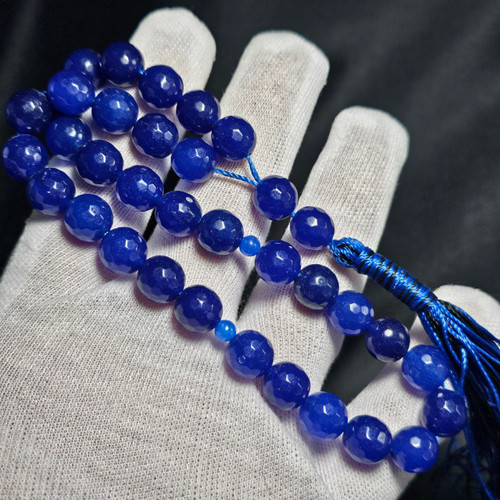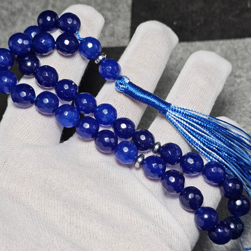تسبیح ۳۳ دانه سنگ جید سورمه ای معدنی تراش دار کد 37086