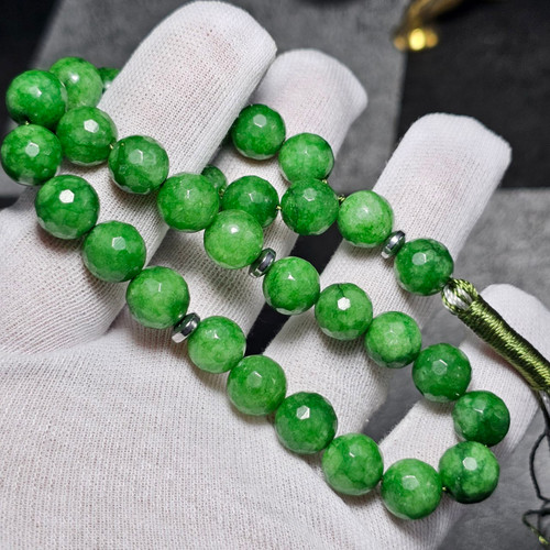 تسبیح ۳۳ دانه سنگ جید سبز معدنی تراش دار کد 37090