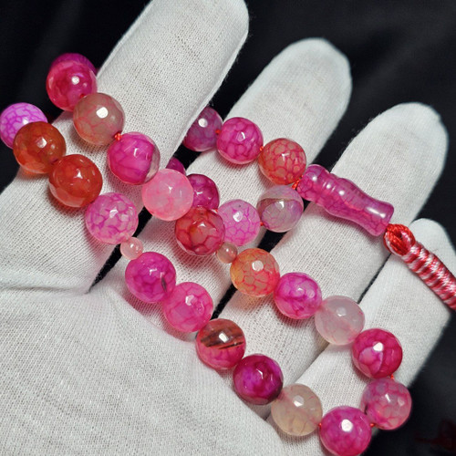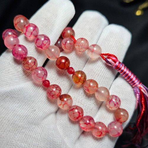 تسبیح ۳۳ دانه سنگ عقیق صورتی دراگون معدنی کد 37749