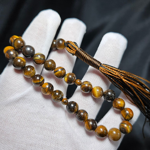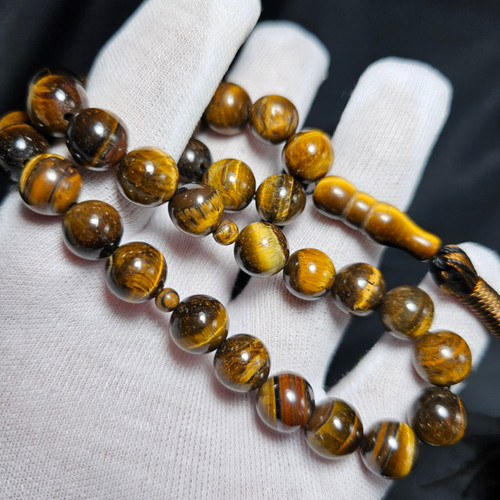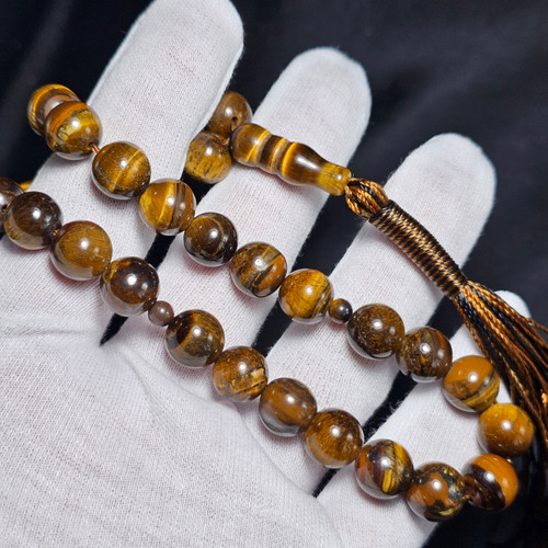 تسبیح ۳۳ دانه سنگ طبیعی چشم ببر معدنی کد 37750