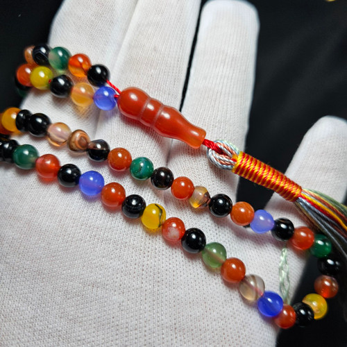 تسبیح ۳۳ دانه سنگ عقیق معدنی کد 37748