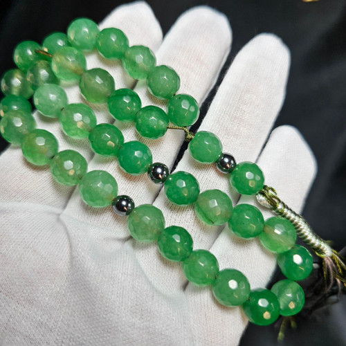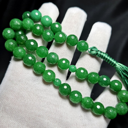 تسبیح ۳۳ دانه سنگ جید سبز معدنی کد 37994