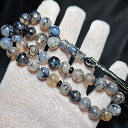 تسبیح ۳۳ دانه سنگ عقیق دراگون معدنی کد 37759