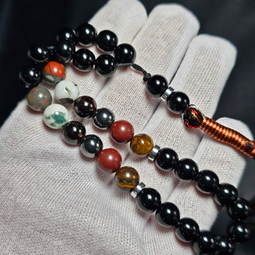 تسبیح ۳۳ دانه سنگ حدید و هفت گانه معدنی کد 37999