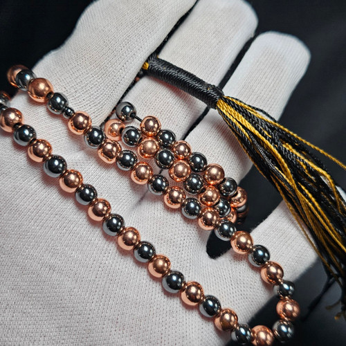 تسبیح ۱۰۱ دانه حدید دودی - طلایی معدنی کد 37793