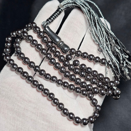 تسبیح ظریف فانتزی ۳۳ دانه سنگ حدید صینی معدنی کد 37460