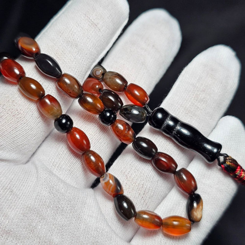 تسبیح ۳۳ دانه سنگ عقیق سلیمانی معدنی کد 37998