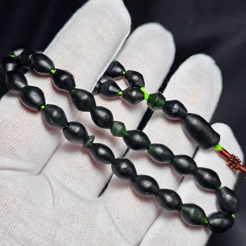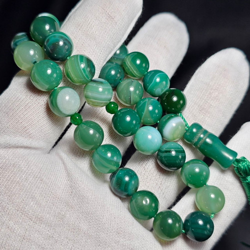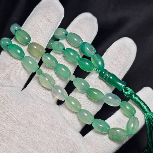 تسبیح ۳۳ دانه سنگ عقیق سبز سلیمانی باباقوری معدنی کد 38007