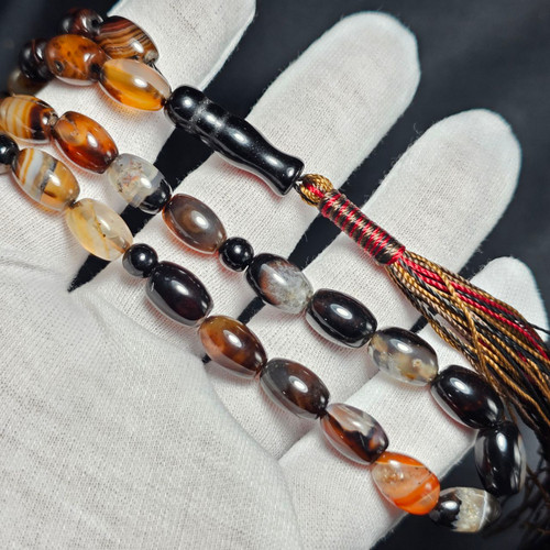 تسبیح ۳۳ دانه سنگ عقیق جزع معدنی کد 38005