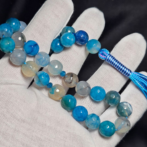 تسبیح ۳۳ دانه سنگ عقیق دراگون آبی معدنی کد 38003