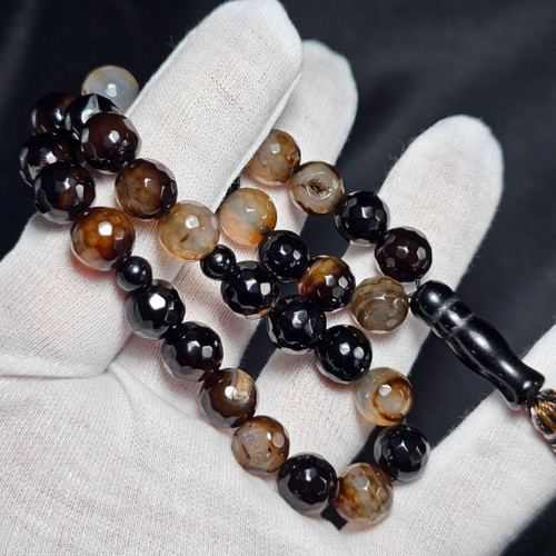 تسبیح ۳۳ دانه سنگ اونیکس معدنی تراش دار کد 37087