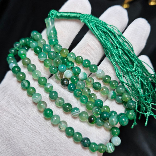 تسبیح ۳۳ دانه سنگ عقیق سبز معدنی کد 37996