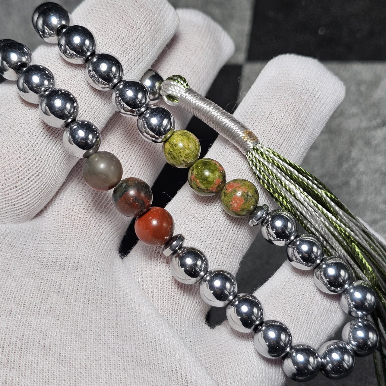 تسبیح ۳۳ دانه سنگ جید یاقوتی و حدید معدنی کد 37080