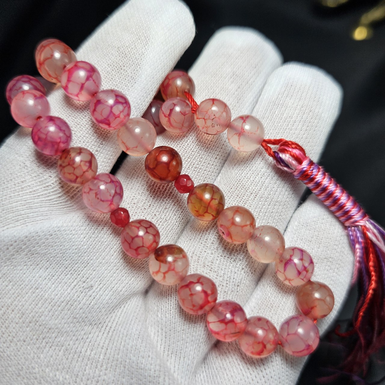 تسبیح ۳۳ دانه سنگ عقیق صورتی دراگون معدنی کد 37749