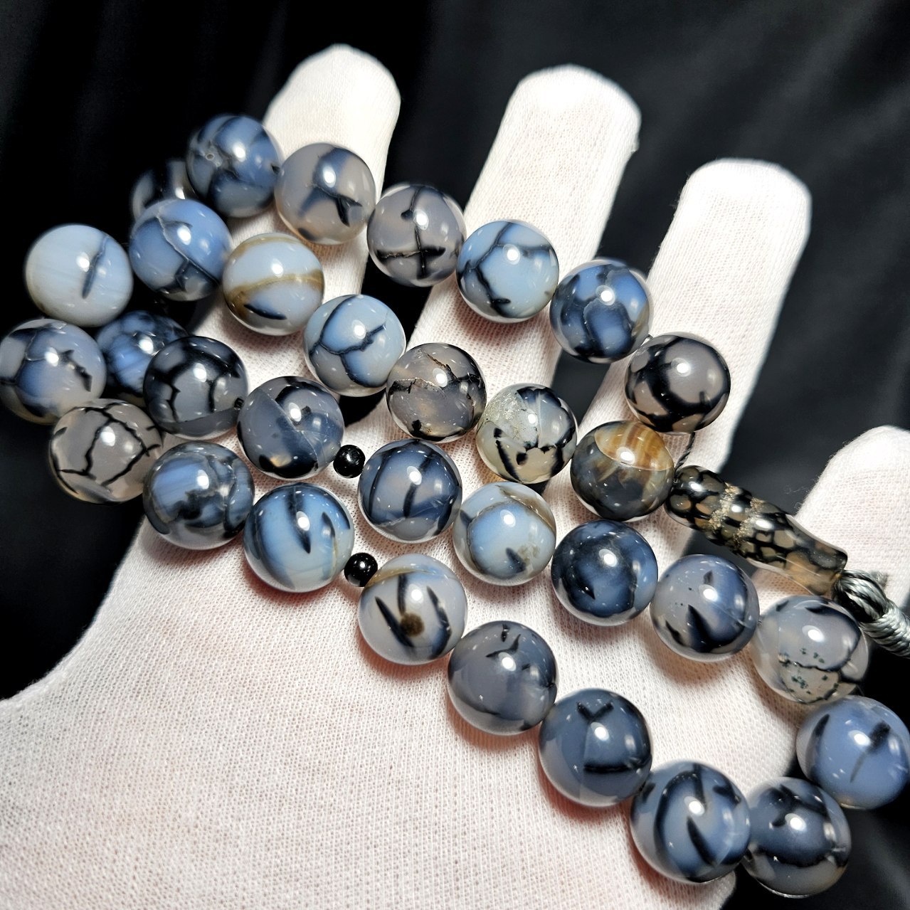تسبیح ۳۳ دانه سنگ عقیق دراگون آبی معدنی کد 38003