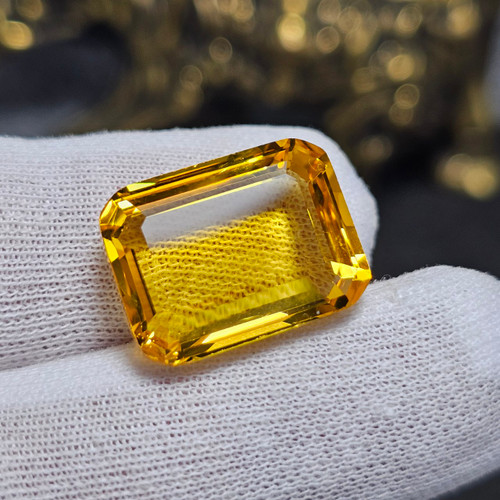 نگین سنگ لمون کوارتز آفریقایی معدنی وزن ۱۲/۳۵ قیراط تراش تایلندی همراه با کارت جواهران کد 31098