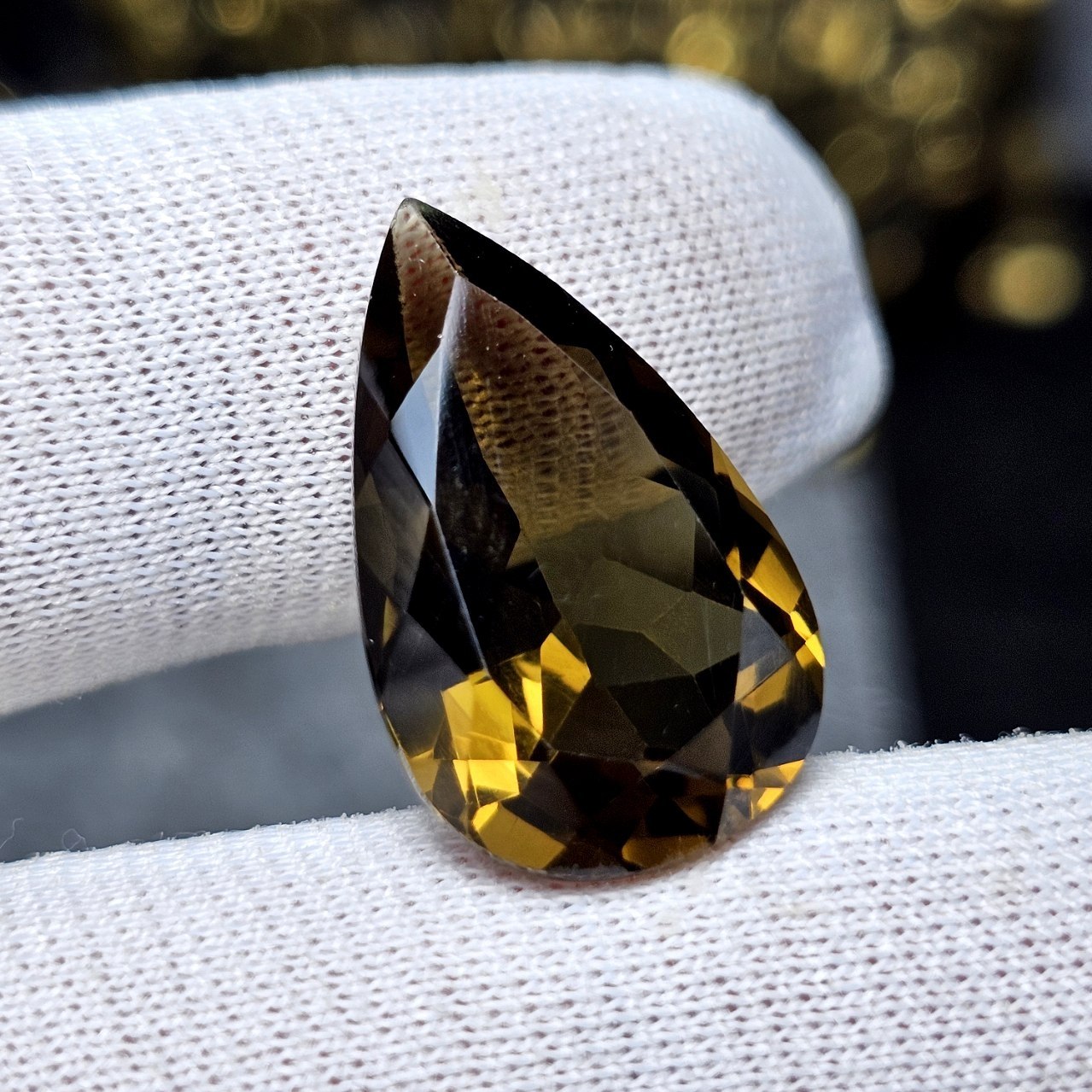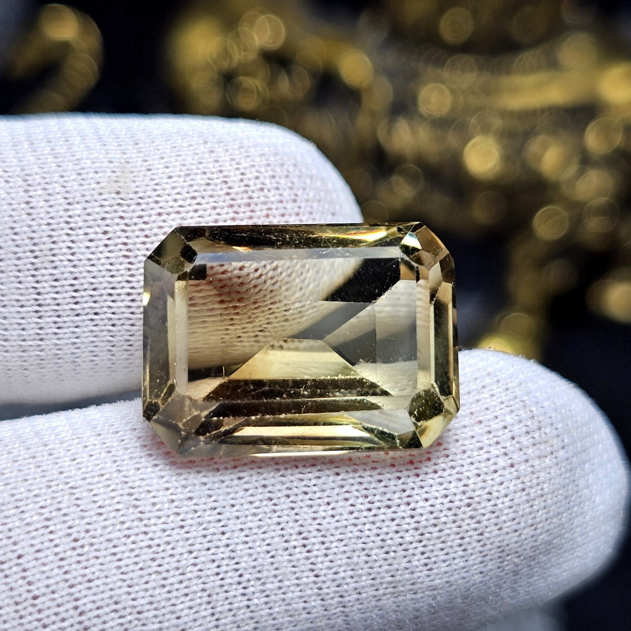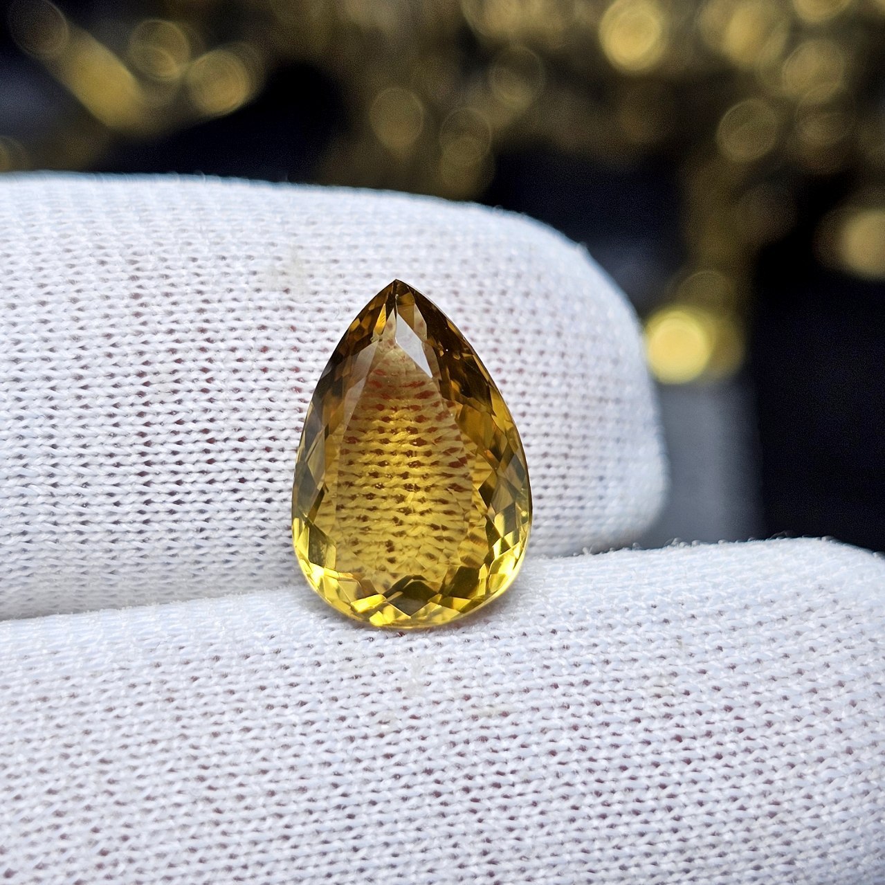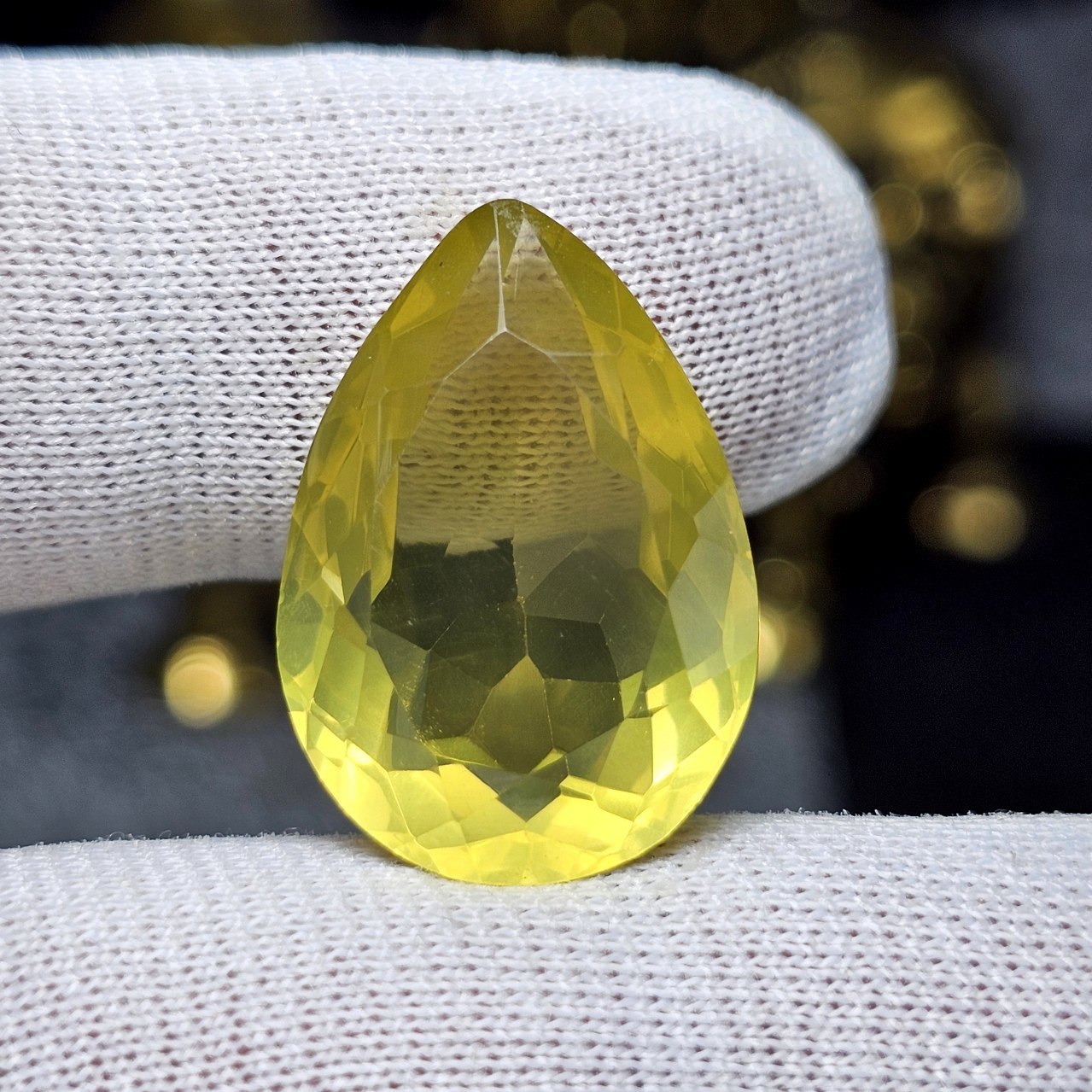 نگین سنگ لمون کوارتز آفریقایی معدنی وزن ۱۲/۳۵ قیراط تراش تایلندی همراه با کارت جواهران کد 31098