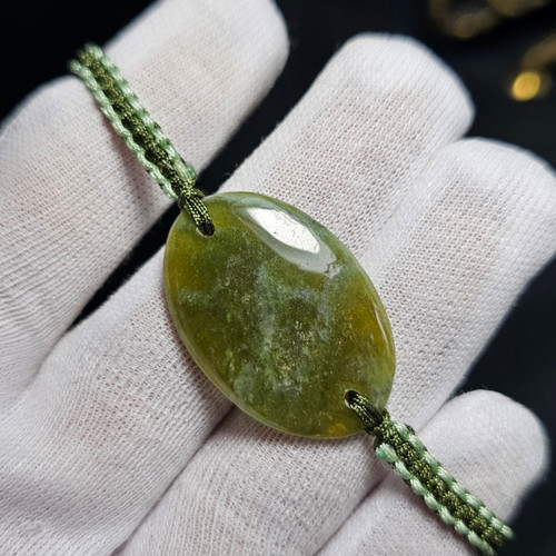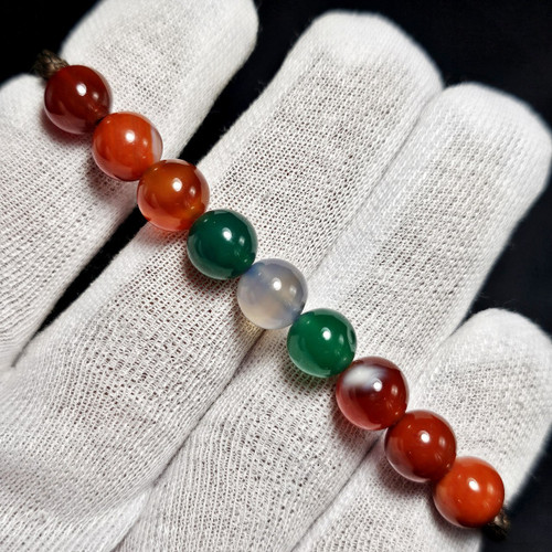 دستبند سنگ عقیق معدنی خراسانی با مهره های جید معدنی کد 34778