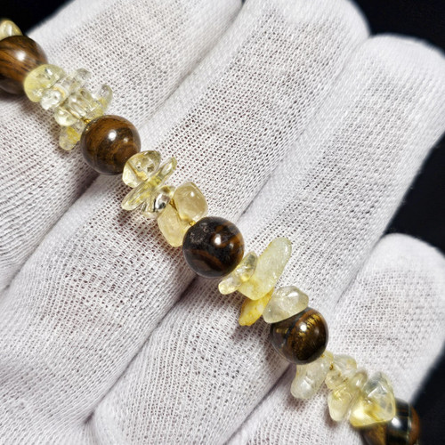 دستبند سنگ چشم ببر و سیترین معدنی کد 37808