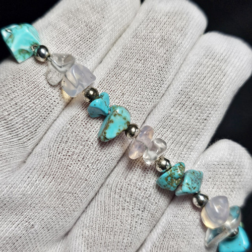 دستبند سنگ های فیروزه و اپالین کد 37817