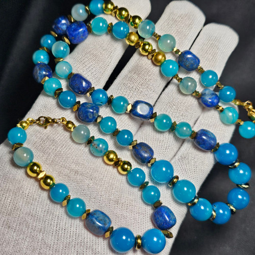 ست دستبند و گردنبند سنگ عقیق و لاجورد معدنی کد 37820