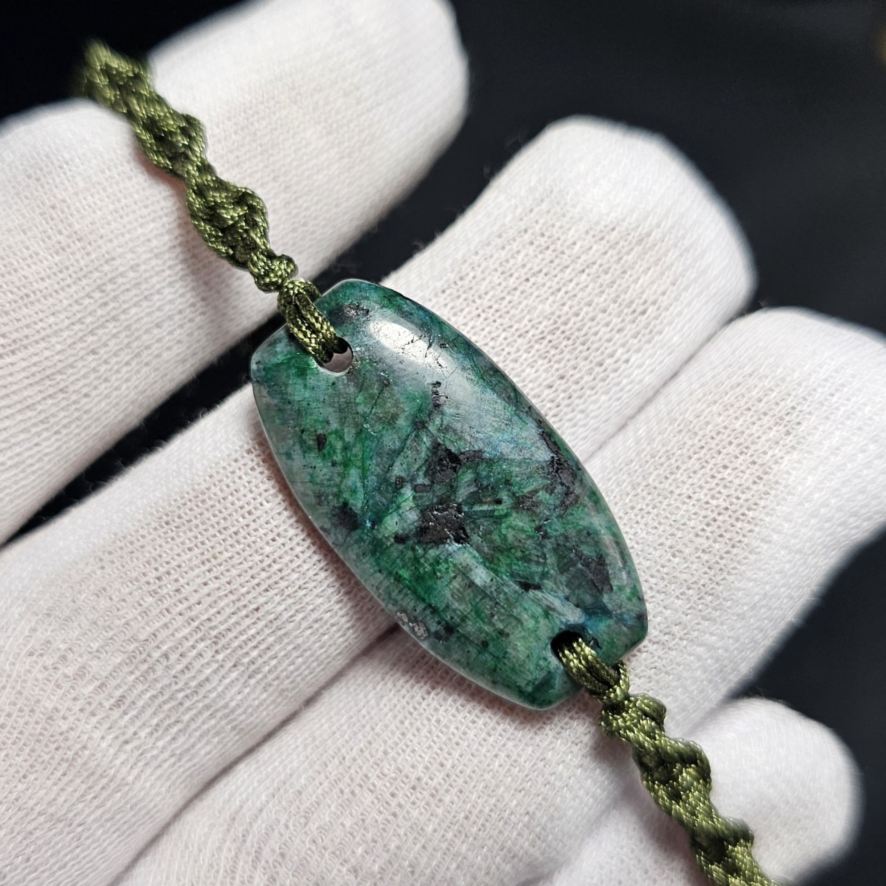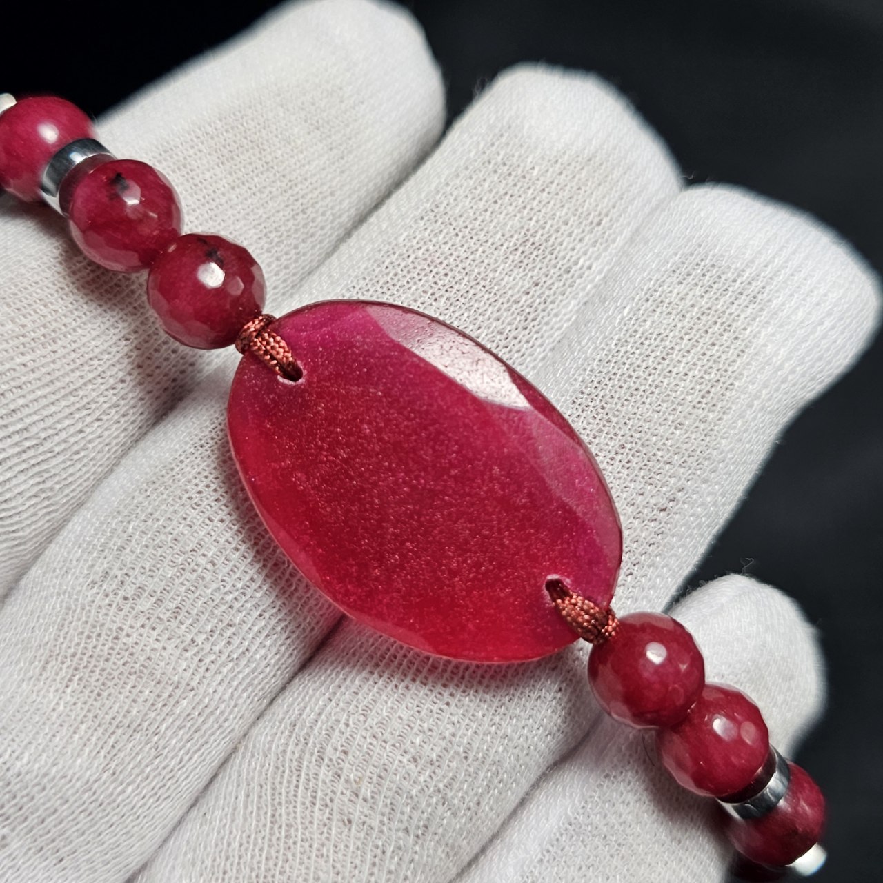 دستبند سنگ طبیعی ژئود معدنی با مهره جید یاقوتی کد 37470