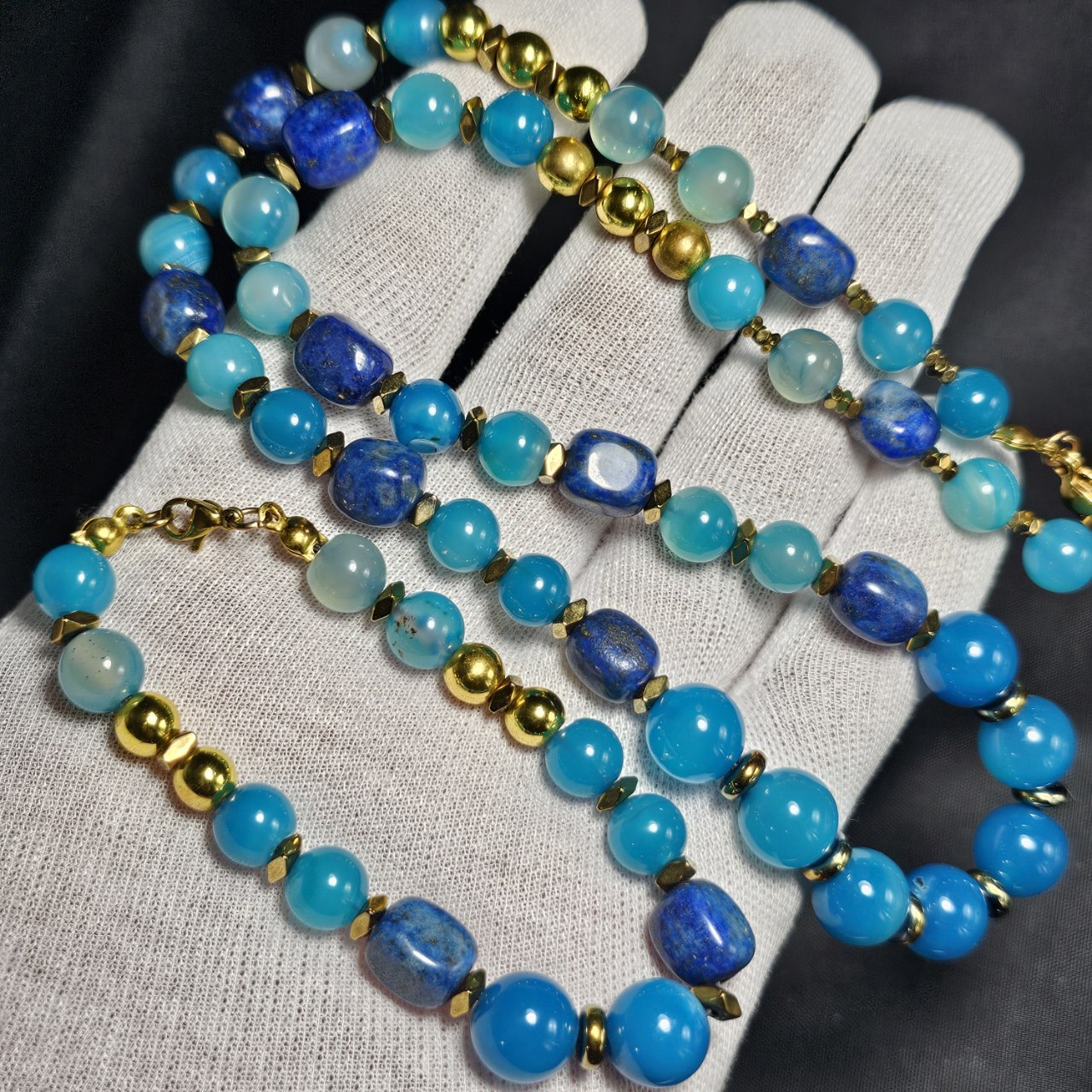 ست دستبند و گردنبند سنگ عقیق و لاجورد معدنی کد 37820