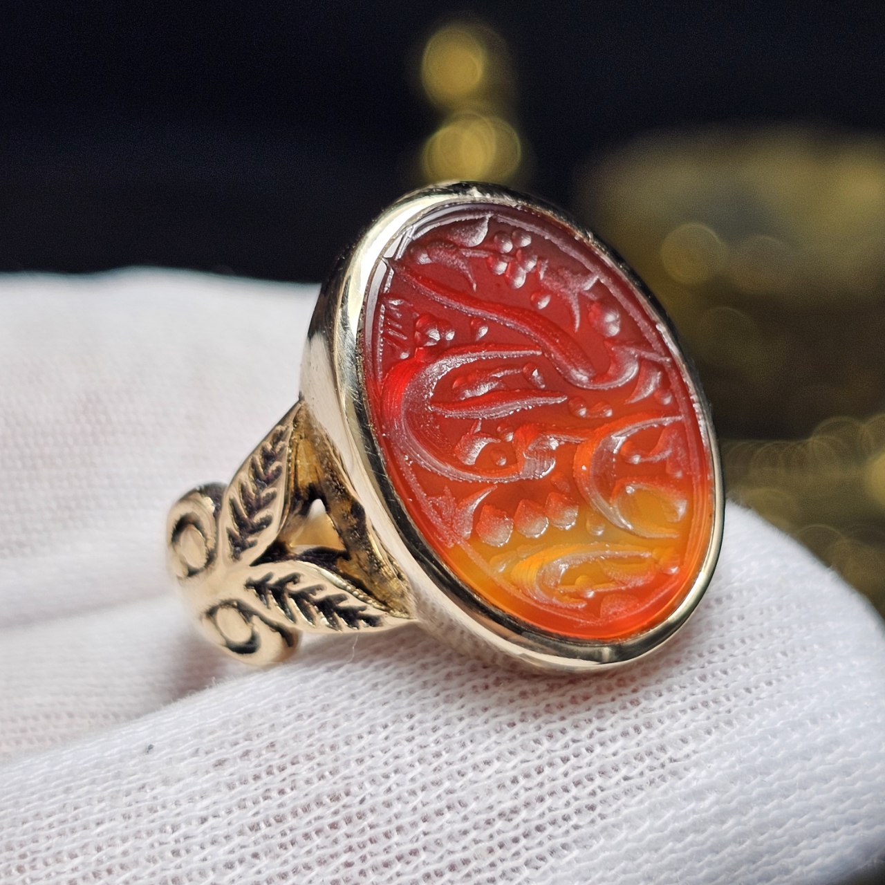 انگشتر طلا روس با سنگ عقیق سرخ معدنی خط دست کد 36547