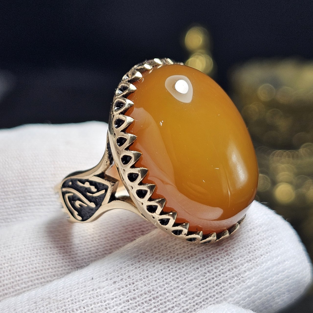 ناموجودانگشتر طلا روس با سنگ عقیق زرد معدنی خراسانی تراش فست دعای شرف الشمس کد 36532