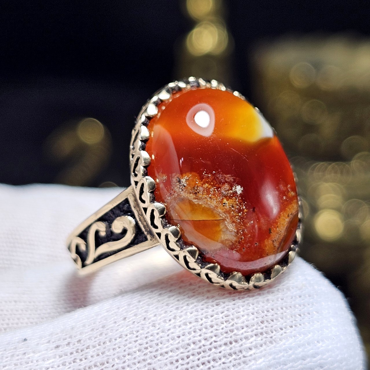 انگشتر نقره روس با سنگ عقیق سرخ معدنی خط دست کد 37019