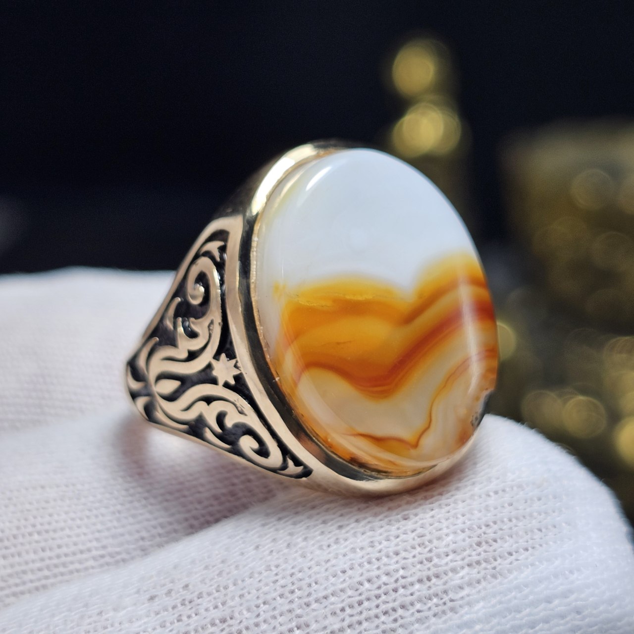ناموجودانگشتر طلا روس با سنگ عقیق عسلی معدنی کد 35808