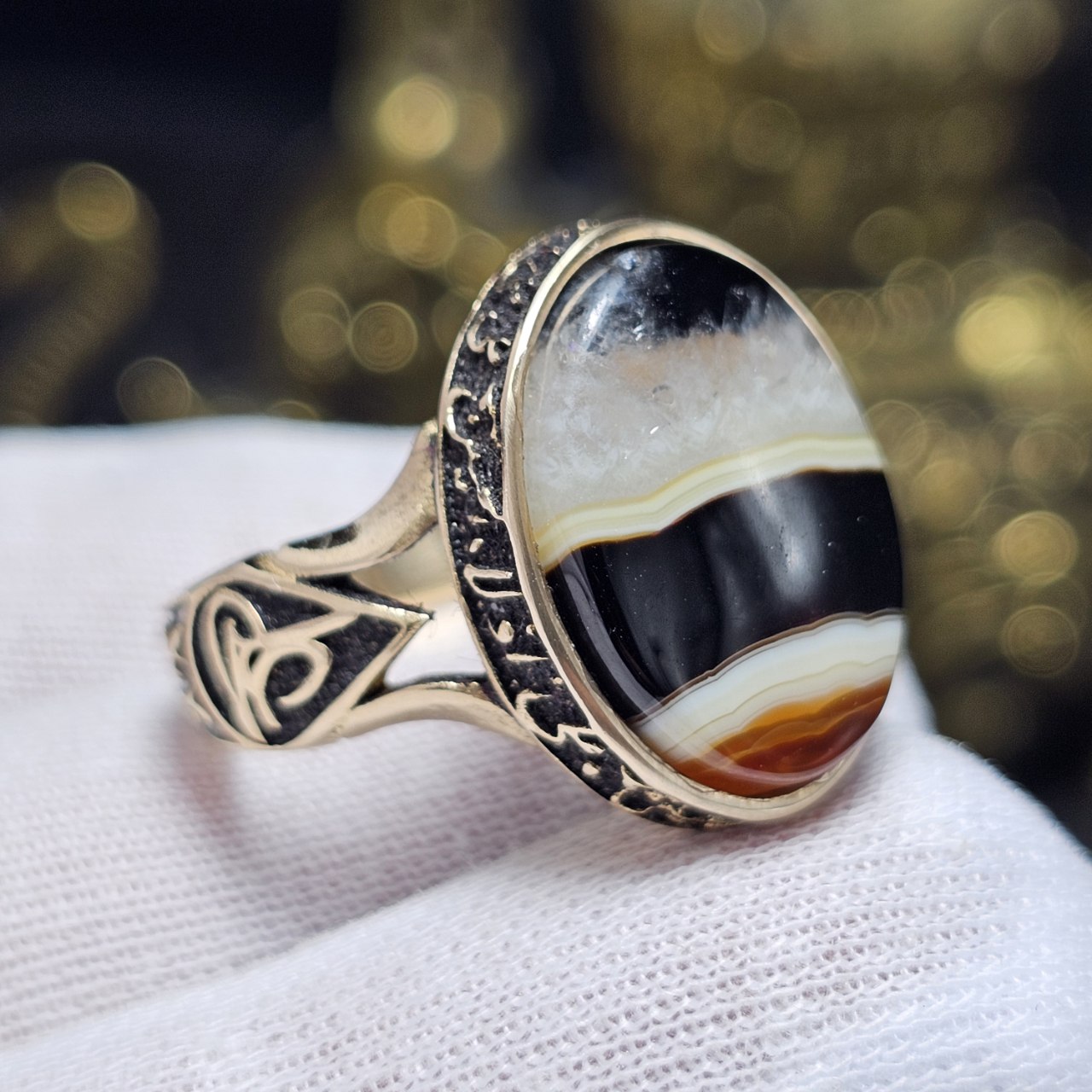 انگشتر طلا روس با سنگ عقیق معدنی با خط دست کد 34767