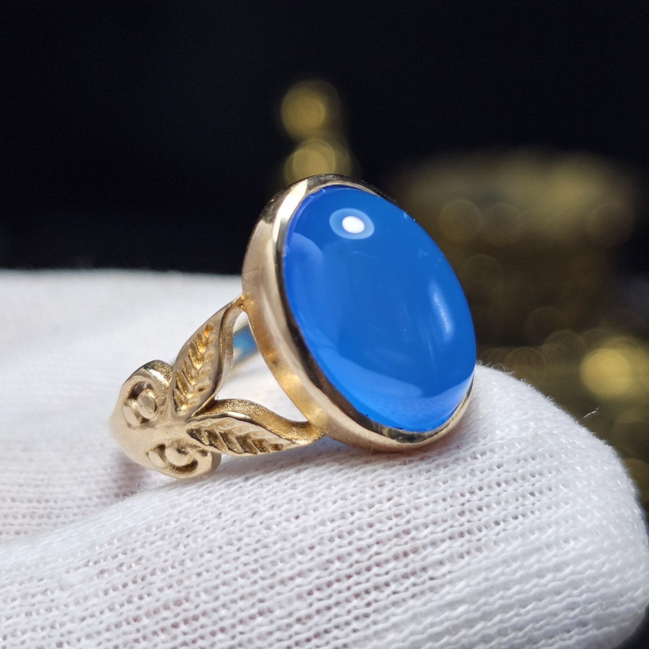 انگشتر طلا روس با سنگ عقیق آبی معدنی کد 37060