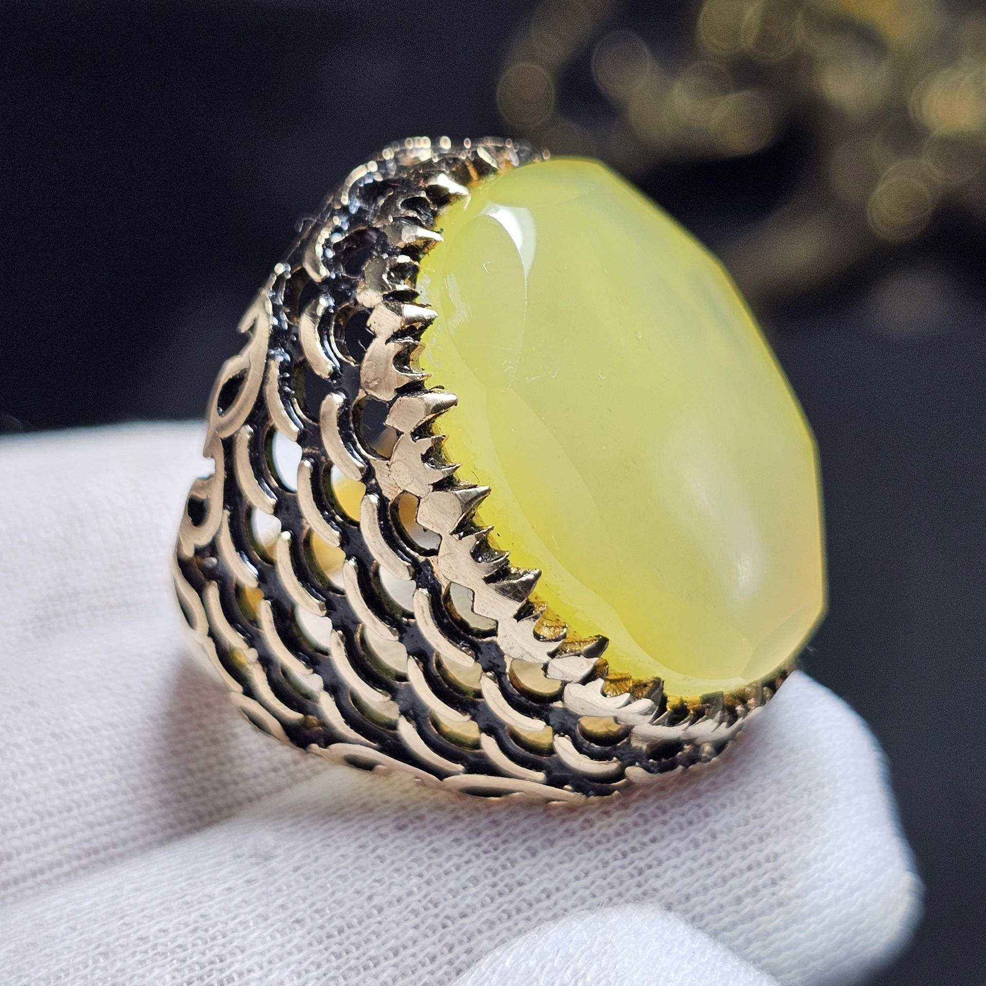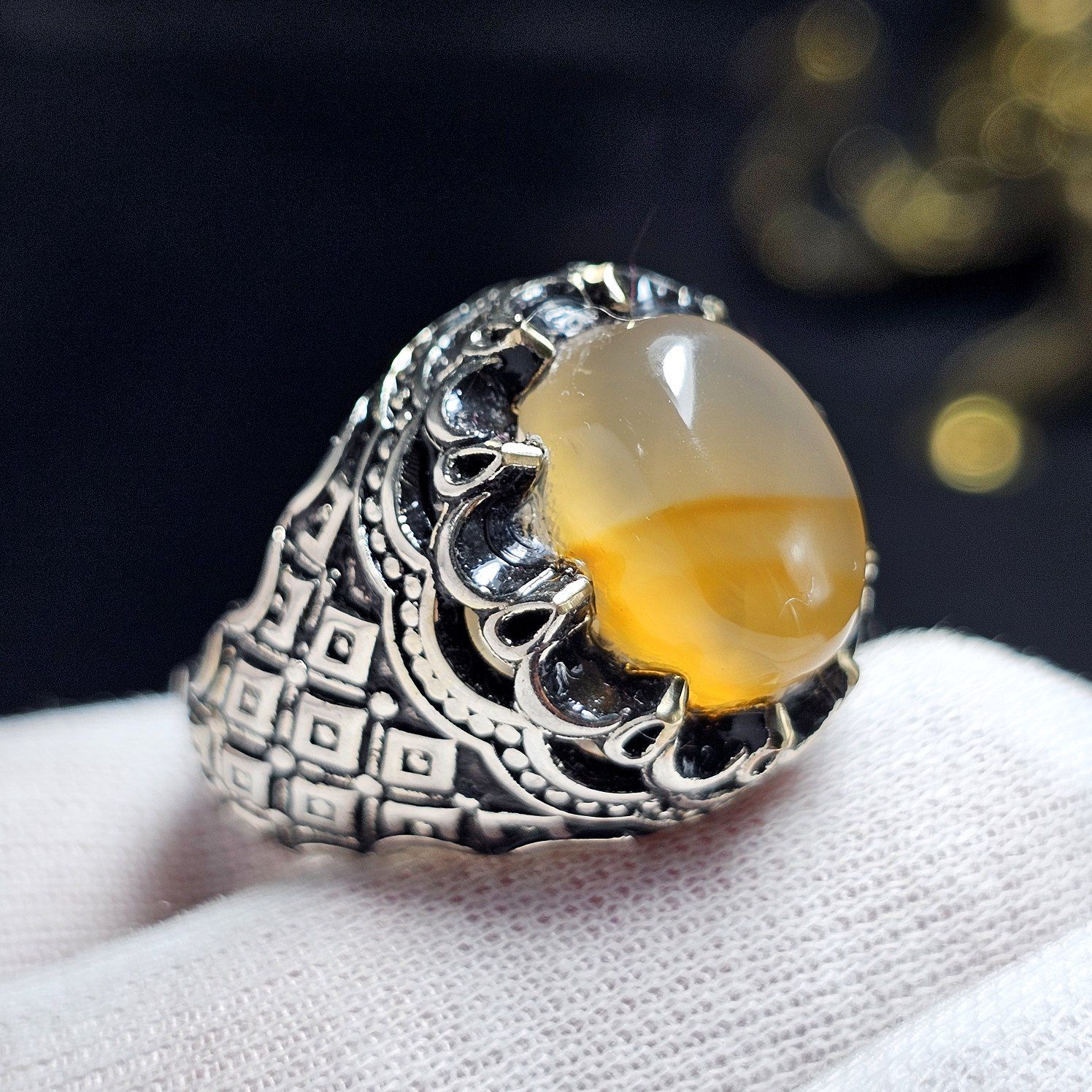 ناموجودانگشتر نقره روس با سنگ عقیق عسلی معدنی اصل یمن کد 37496