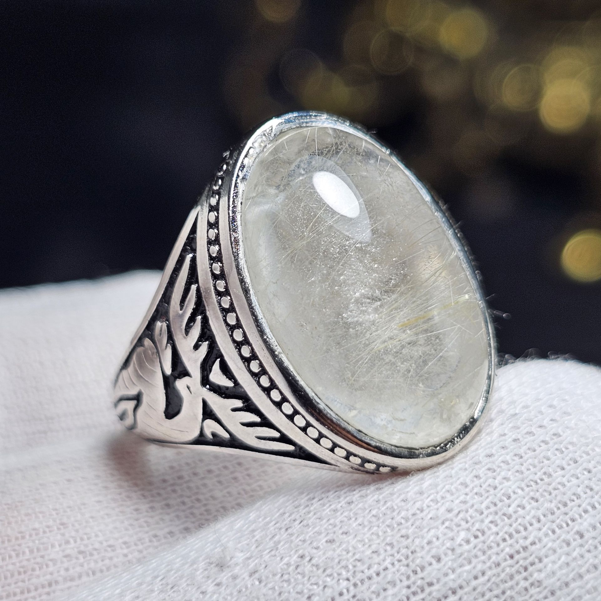ناموجودانگشتر نقره روس با سنگ طبیعی در مویی معدنی کد 37497