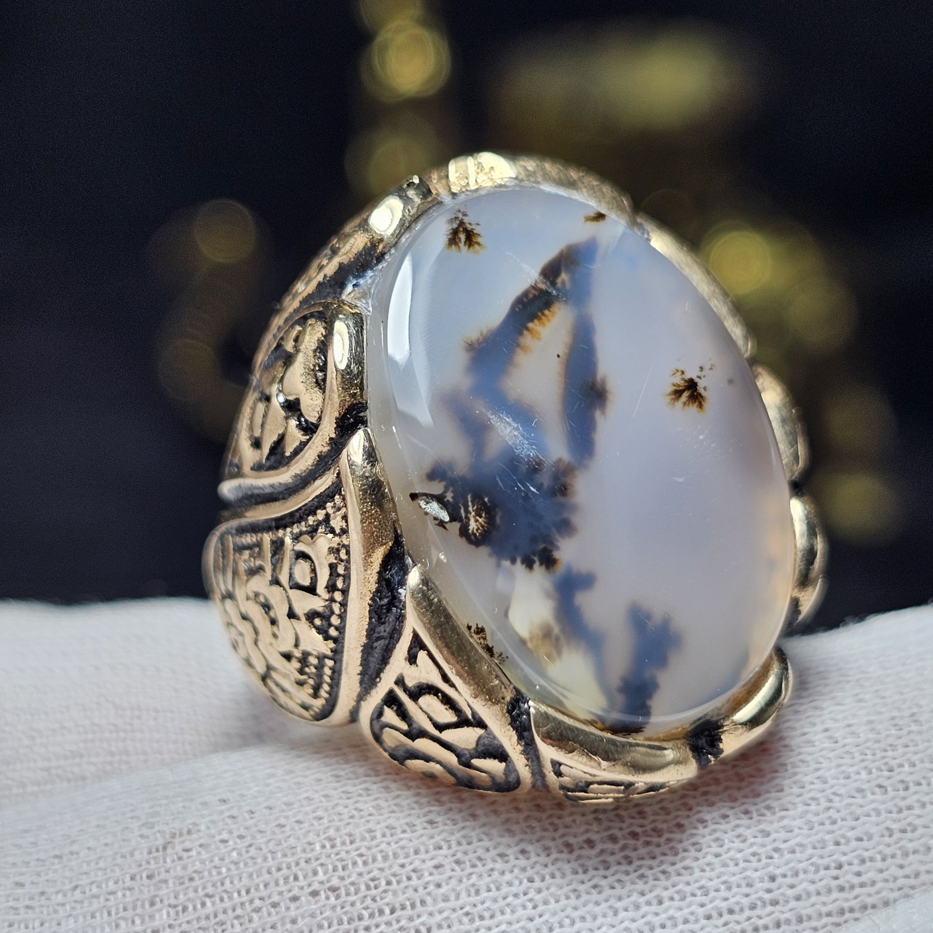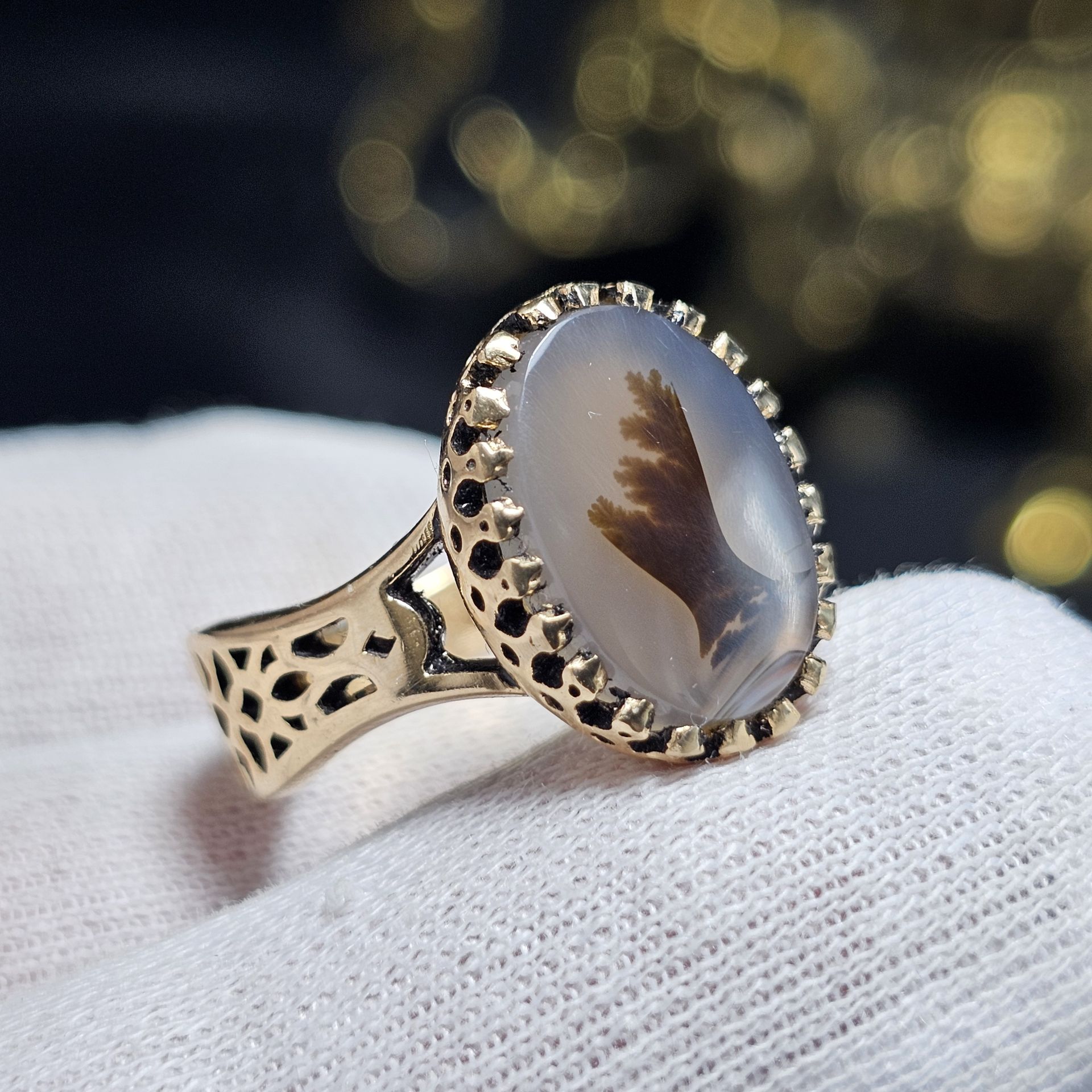 انگشتر طلا روس با سنگ عقیق شجر معدنی قائن کد 37533
