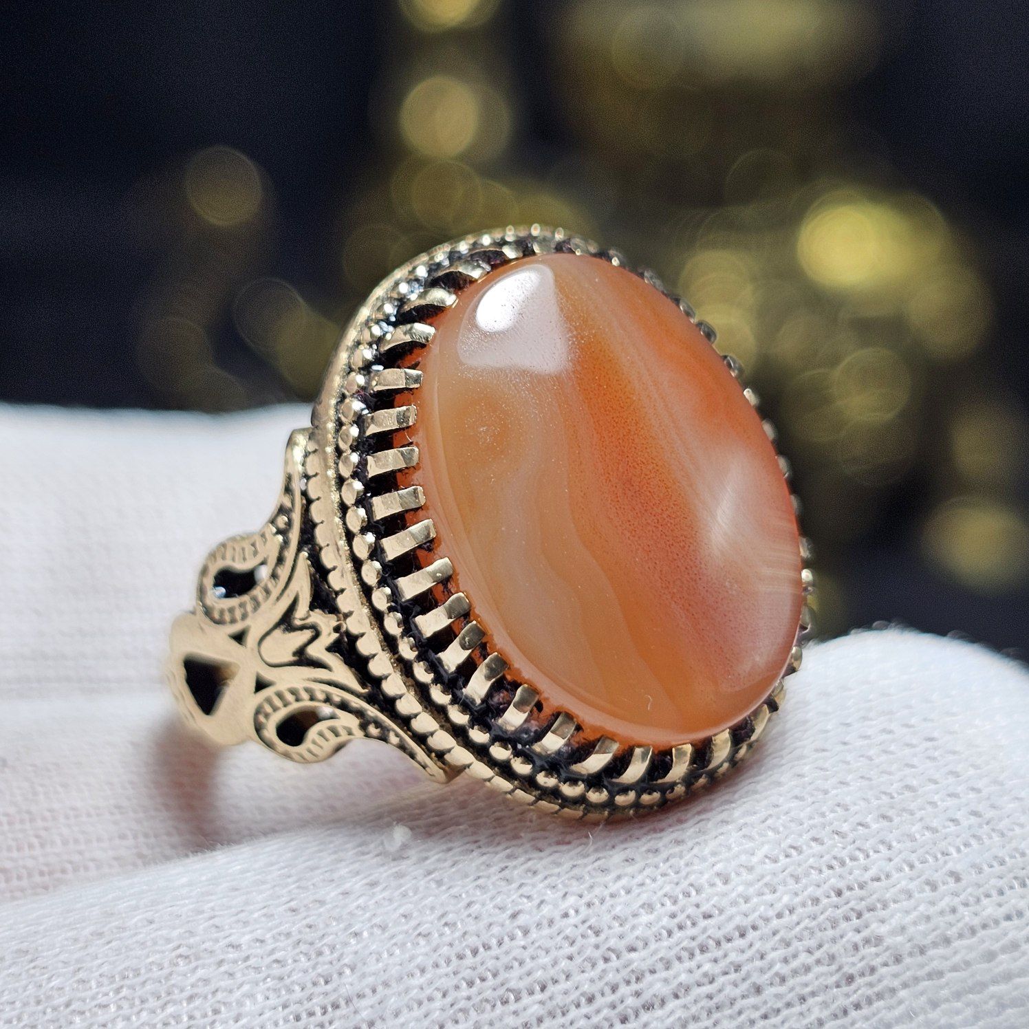 انگشتر طلا روس با سنگ طبیعی عقیق معدنی قائن نمونه خاص کد 37378