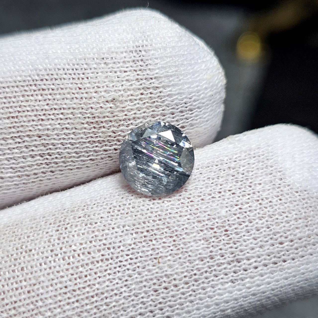 نگین سنگ مویزانایت نقره ای نمونه خاص کد S3727
