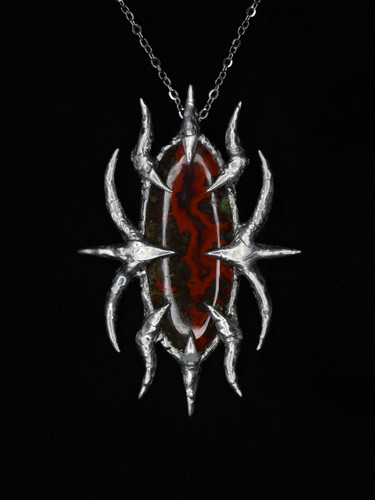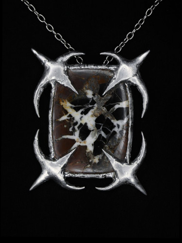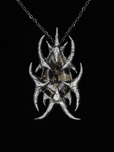 آویز دست ساز سنگ طبیعی فسیل تورتیلا معدنی با تکنیک سولدرینگ کد I668