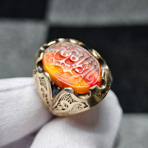 انگشتر طلا روس با سنگ عقیق معدنی با خط دست کد 34767