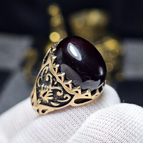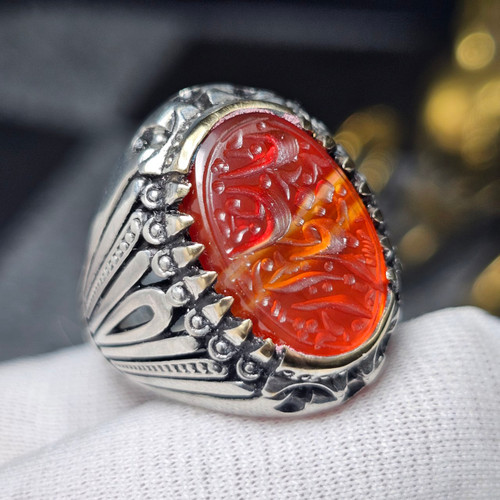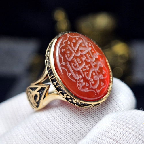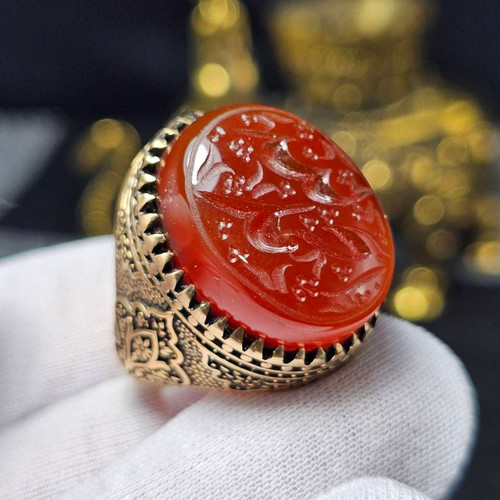 انگشتر طلا روس با سنگ عقیق سرخ معدنی خراسانی حکاکی دست کد 35169