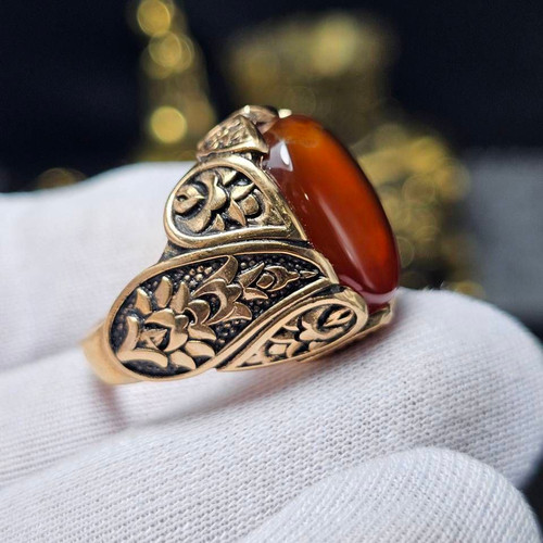 ناموجود انگشتر نقره دستساز جباری تبریز با نگین عقیق زرد معدنی خراسانی کد S3490