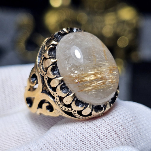 انگشتر طلا روس با سنگ طبیعی در مویی معدنی کد 35805