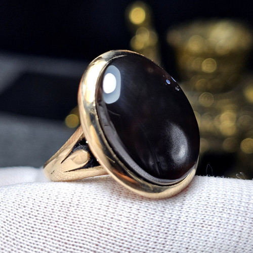انگشتر طلا روس با سنگ عقیق شفت العبد معدنی کد 35806