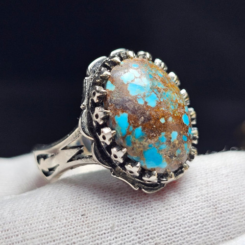 ناموجودانگشتر نقره روس با سنگ طبیعی فیروزه درشت معدنی نیشابور کد 37510