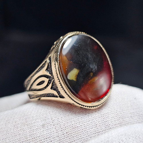 ناموجودانگشتر نقره روس با سنگ عقیق عسلی معدنی اصل یمن کد 37496