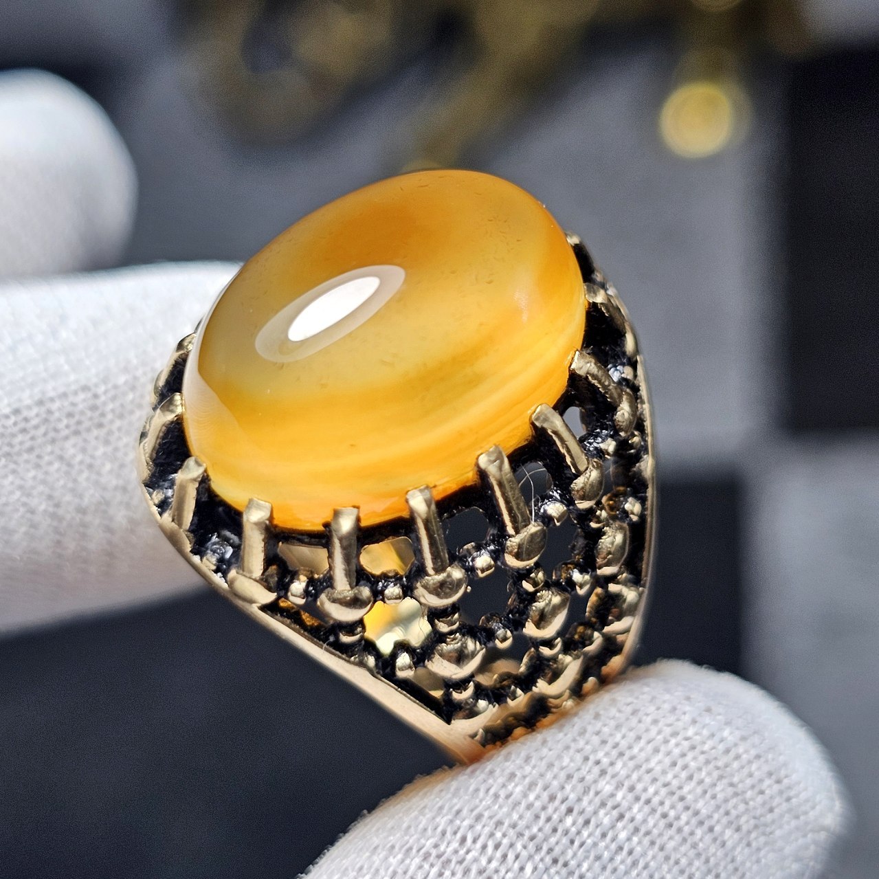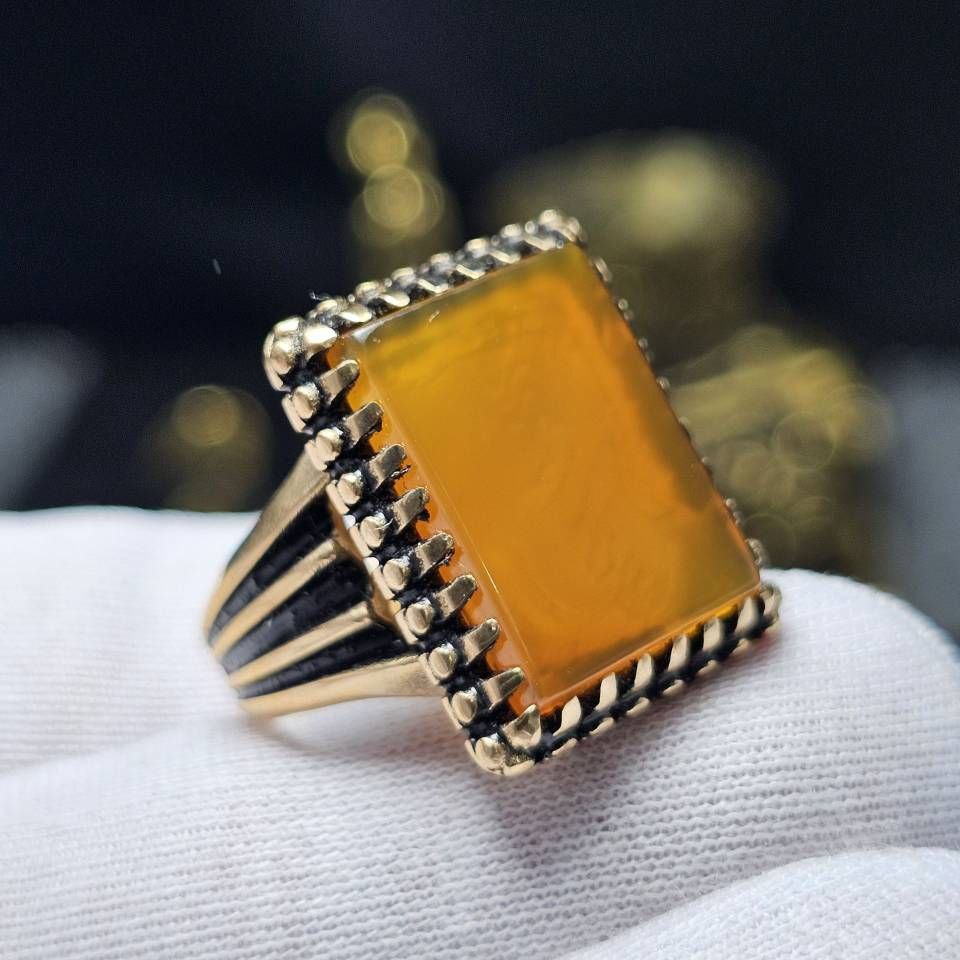 ناموجود انگشتر نقره دستساز جباری تبریز با نگین عقیق زرد معدنی خراسانی کد S3490